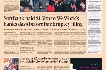 The Financial Times reveals that SoftBank had to send $1.5bn to Goldman Sachs and other lenders just before WeWork’s bankruptcy filing.