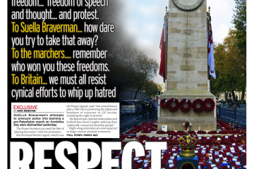 The Daily Mirror reports on the Royal British Legion’s support for pro-Palestine protests on Armistice Day, contradicting Suella Braverman’s views.