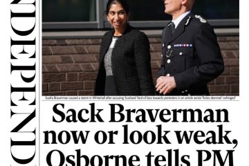 The i paper reports on the controversy surrounding Suella Braverman’s role, as Rishi Sunak faces criticism for his alleged inability to dismiss his Home Secretary.