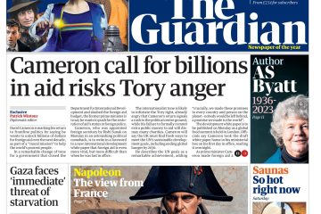 Lord David Cameron’s call for billions in foreign aid over the next decade is highlighted in The Guardian.