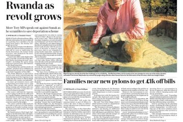 The Sunday Telegraph reports on Rishi Sunak’s efforts to quell a Tory rebellion over his small boats policy by sending officials to Rwanda.