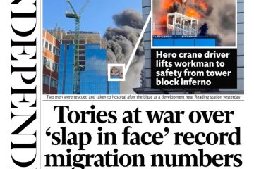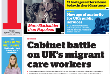 The Daily Express highlights former home secretary Suella Braverman’s remarks on the latest net migration statistics from the Office For National Statistics.