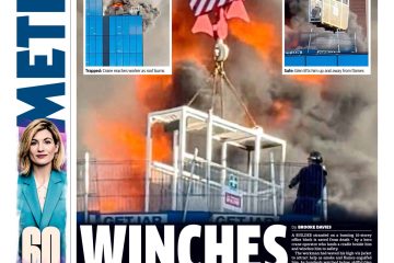 The Metro highlights a daring rescue of a trapped builder from a burning building using a crane.