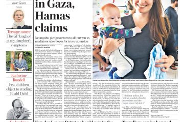 The Daily Telegraph highlights the tragic death of baby Kfir Bibas, his brother and mother in Gaza, following their hostage situation with Hamas.