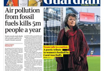 The Guardian reveals a study indicating that fossil fuel air pollution causes 5 million global deaths annually.