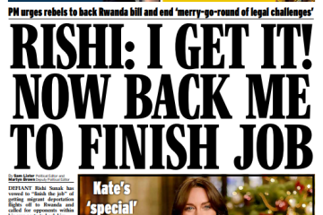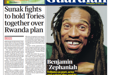 The Guardian reports on the prime minister’s struggle to unite his party over a proposed migrant bill to Rwanda.