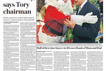The Daily Telegraph reports the Tory party chairman’s warning against the ‘insane’ ousting of Rishi Sunak before the next election.