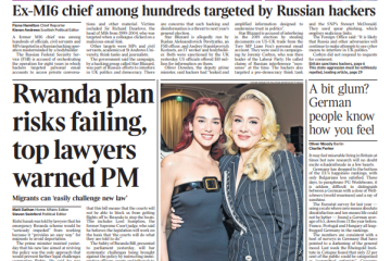 The Times reports top lawyers’ warning to the prime minister about potential failure of his Rwanda plan due to migrant legal challenges.
