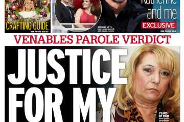 The Daily Mirror highlights the relief of James Bulger’s mother as Jon Venables, her son’s murderer, is denied parole.