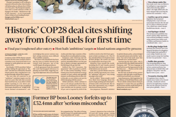The Financial Times reports on the COP28 climate deal’s first-ever mention of moving away from fossil fuels.
