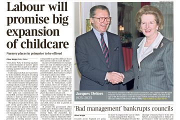 The Times reveals Labour’s general election manifesto, promising a significant increase in nursery places.