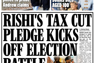 The Daily Express reports Rishi Sunak’s promise of additional tax reductions as he commences his election campaign.