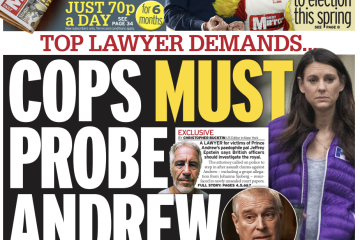 The Daily Mirror reports that a solicitor for Jeffrey Epstein’s victims urges UK police to probe Prince Andrew’s allegations.