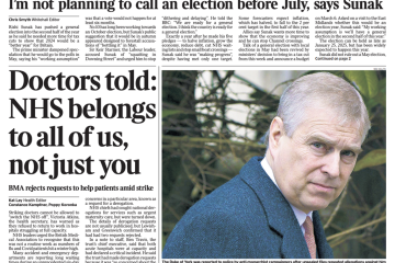 The Times reports that Health Secretary Victoria Atkins warns against doctors’ strike amidst NHS’s struggle with full capacity.