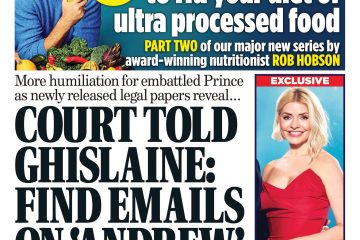 The Sunday People reports on court papers alleging Prince Andrew’s daily massages at Jeffrey Epstein’s Florida residence.