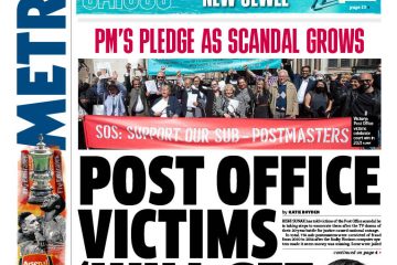 The Metro reports on Rishi Sunak’s commitment to vindicate Post Office scandal victims after two decades of struggle.