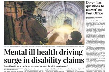 The Times highlights a surge in disability benefits claims due to escalating mental health issues.