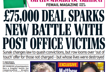 The Daily Mail reports on the ongoing struggle for compensation by hundreds of sub-postmasters, despite government promises of exoneration in the Post Office Horizon scandal.