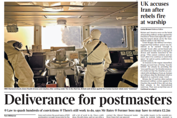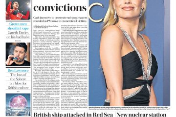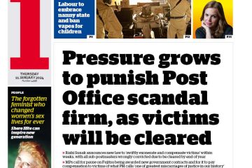 The Times reports on the Post Office Horizon scandal and Rishi Sunak’s pledge to overturn the convictions of numerous sub-postmasters.