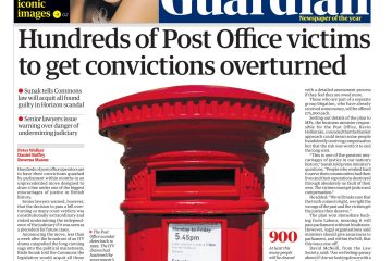The Guardian highlights the Post Office Horizon scandal and the government’s plan to acquit implicated sub-postmasters.