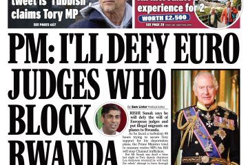 The Daily Express reports the Prime Minister’s readiness to defy European human rights judges over migrant deportations to Rwanda.