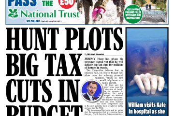 The Daily Express reports on Chancellor Jeremy Hunt’s strong indications of substantial tax reductions in the upcoming spring budget.