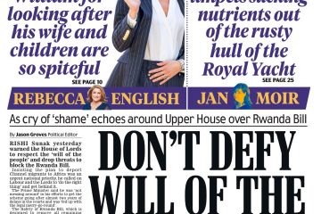 The Independent reports on the House of Lords’ defiance against Rishi Sunak’s Rwanda legislation despite his warnings.
