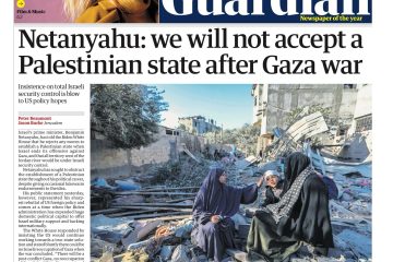 The Guardian reports Netanyahu’s refusal to establish a Palestinian state post-Gaza conflict.