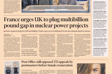 The Financial Times reports on Paris urging the UK to contribute to a nuclear project led by French state-owned EDF.