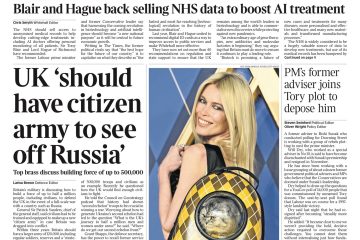 The Times reports on the British military’s plans to assemble a 500,000-strong force to protect the UK in a potential war against a foe like Russia.