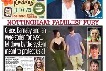 The Daily Mirror’s front page features a photograph of Nottingham stabbing victims Grace O’Malley-Kumar and Barnaby Webber, highlighting the system’s failure to protect them.