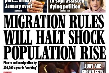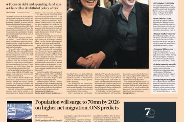 The Daily Express leads with Home Secretary James Cleverly’s assertion that stringent migration rules are required to prevent the UK’s population from reaching 74 million by 2036.