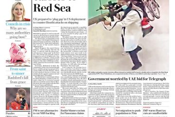 The Daily Telegraph reveals the Royal Navy’s plans to deploy an aircraft carrier to the Red Sea to thwart Houthi Rebel attacks.