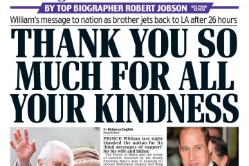 The Daily Mail leads with Prince William’s first public outing since the King’s cancer news broke.