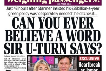 The Daily Mail highlights Sir Keir Starmer’s reversal on his £28bn green policy.