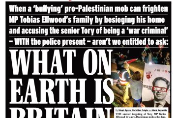 The Daily Express reports on pro-Palestinian protesters labelling Tory MP Tobias Ellwood a “war criminal”.