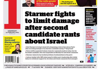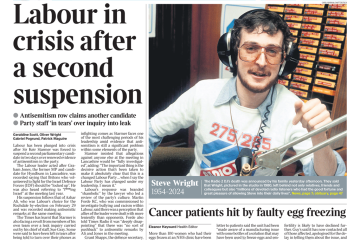 The Times reports on the Labour Party’s crisis as Sir Keir Starmer suspends a second candidate over antisemitism claims.
