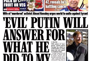 The Daily Express highlights the plea of Alexei Navalny’s widow for global leaders to topple Putin’s ‘evil regime’.