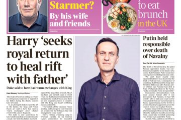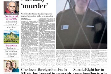 The Daily Telegraph features the demise of Putin critic Alexei Navalny, as his wife demands justice for his “murder”.