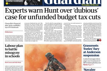 The Guardian reports on experts warning the chancellor about the risky proposition of unfunded tax cuts in the forthcoming budget.