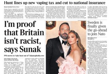 The Times reports on Rishi Sunak’s assertion that his success is evidence against Britain being a racist country amidst ongoing party Islamophobia claims.