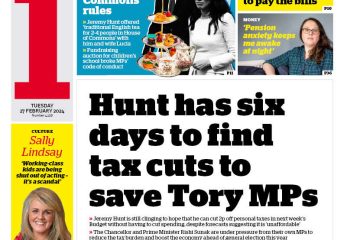 The i reports Jeremy Hunt’s race against time to find tax cuts to save Tory MPs from defeat.