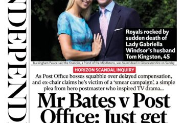 The Independent highlights Alan Bates’ plea for the government to compensate victims of the Post Office scandal.
