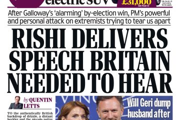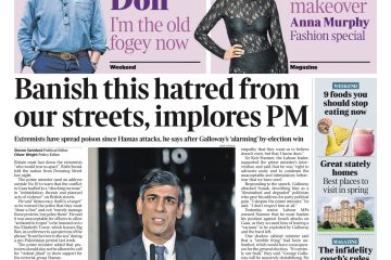 The Times covers Rishi Sunak’s reaction to George Galloway’s by-election victory in Rochdale, describing it as “beyond alarming”.