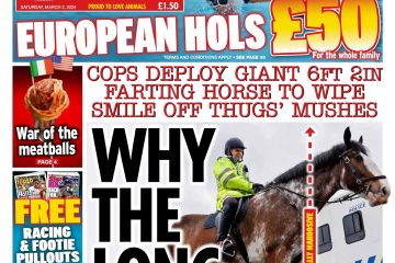 The Daily Star highlights the recruitment of a 6ft 2 horse, known for its flatulence, by Greater Manchester Police.