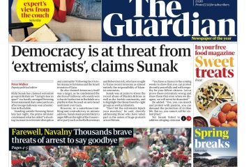 The Guardian highlights Rishi Sunak’s warning about the threat extremists pose to democracy.