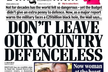 The Daily Mail reports on the £29m funding deficit faced by the UK military, criticising the lack of a credible financial plan.