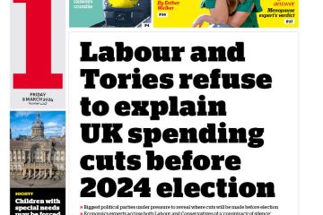 The i newspaper highlights claims of Labour and Conservatives’ silence on pre-election UK spending cuts.