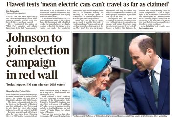The Times reveals that ex-Prime Minister Boris Johnson is set to campaign for the Tories in red wall seats following a reconciliation with Rishi Sunak.