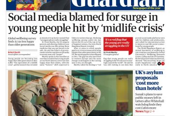 The Guardian reports on a survey revealing that young individuals are increasingly less content than their elders, experiencing a form of ‘midlife crisis’.